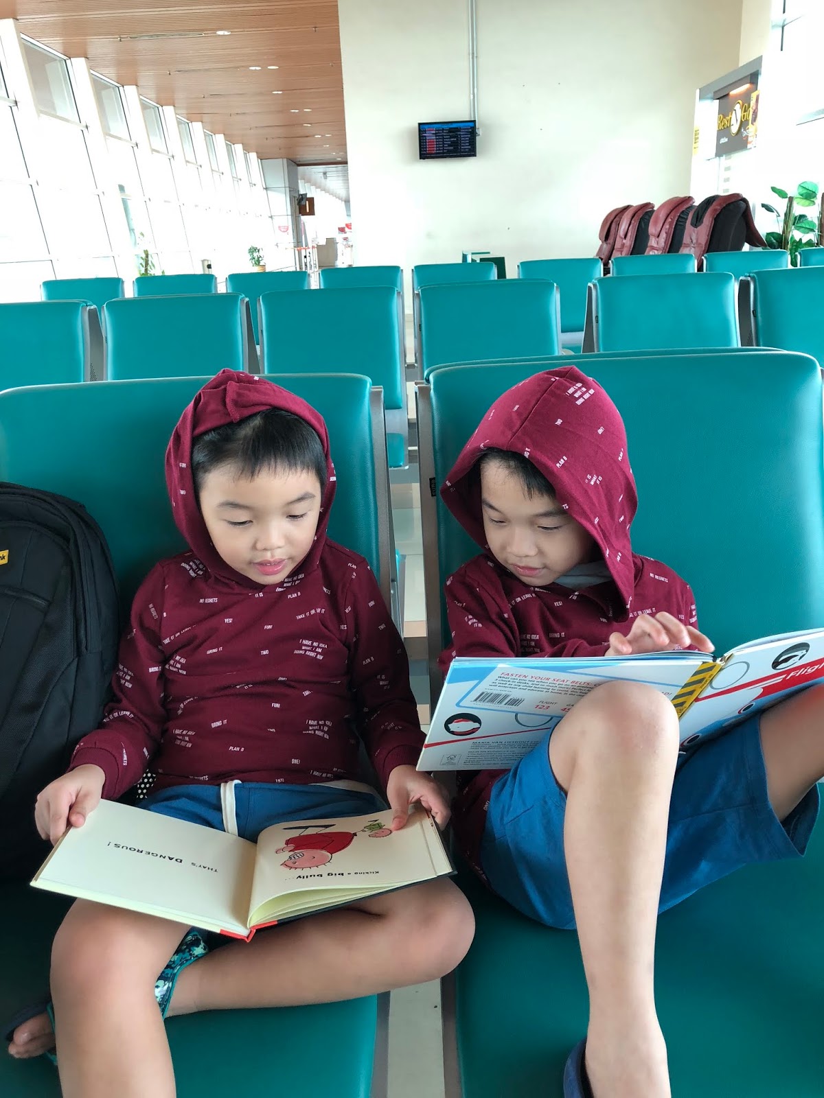 我们很早就到机场,给孩子消磨时间的是故事书。